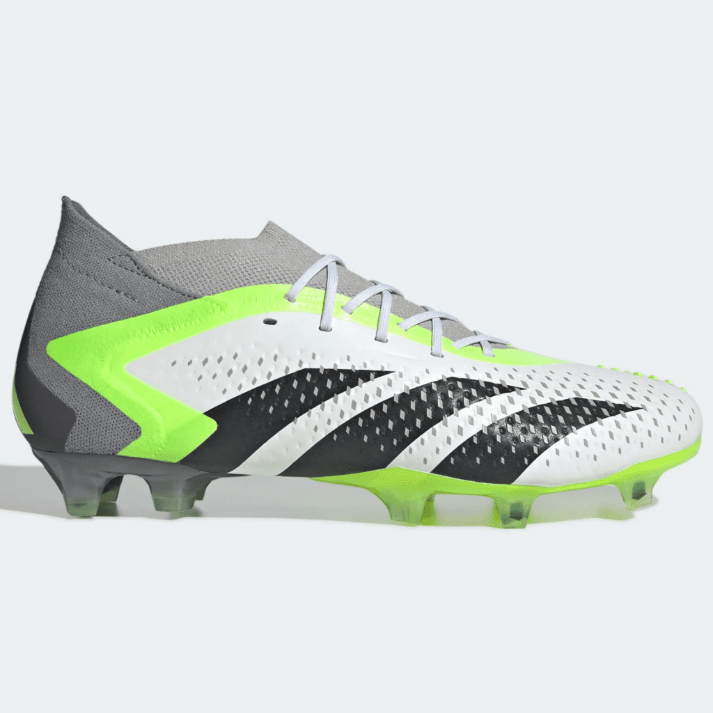 The Predator Accuracy .1 is a laced, mid-cut boot with a soft upper and exceptional grip elements. It’s perfect for players looking to add swerve and precision to their shots.