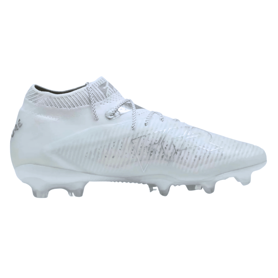The Puma Future is a fairly affordable top-end football boot that offers great comfort. It features a soft, flexible knit upper and Fusion Fit 360 technology for a sock-like fit. The boot includes a power tape across the midfoot for improved lockdown. However, the heel lacks structure, leading to a less secure fit in that area. With a combination of bladed and conical studs, it is designed for firm ground natural grass. At around $220, it provides excellent value compared to more expensive models. It offers similar features to higher-end boots but with some trade-offs in lockdown. This boot is ideal for players seeking comfort, flexibility, and a sock-like feel.
