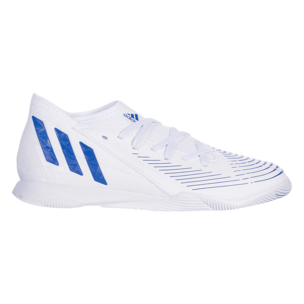 The Adidas Predator Edge.3 Youth Indoor soccer cleat is designed to excel on indoor surfaces. Following in step with the flagship Predator Edge it’s based on, the this youth model has striped zones on the upper for players to control and strike the ball. It has a soft synthetic upper that is comfortable and provides good grip. The cleat has a molded heel cup and a die-cut EVA insole for cushioning. It also has a TRAXION 2.0 outsole for traction on indoor surfaces.