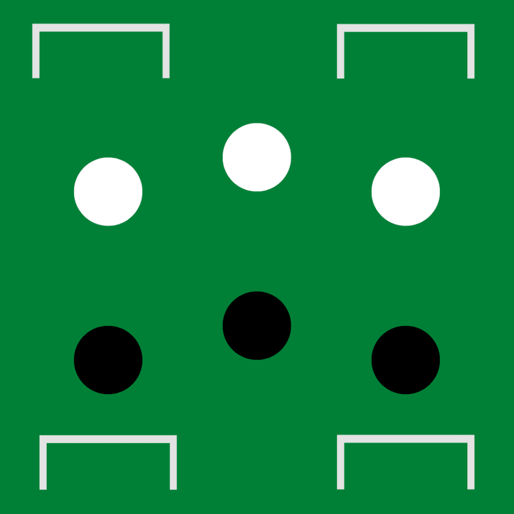 Possession is another timeless drill for players who want to work on their ball movement and defense. This drill can be done with any amount of players. If you have an odd number of players, you can designate one player as neutral. This player (designated in orange above) will play for whichever team has possession at any given time.