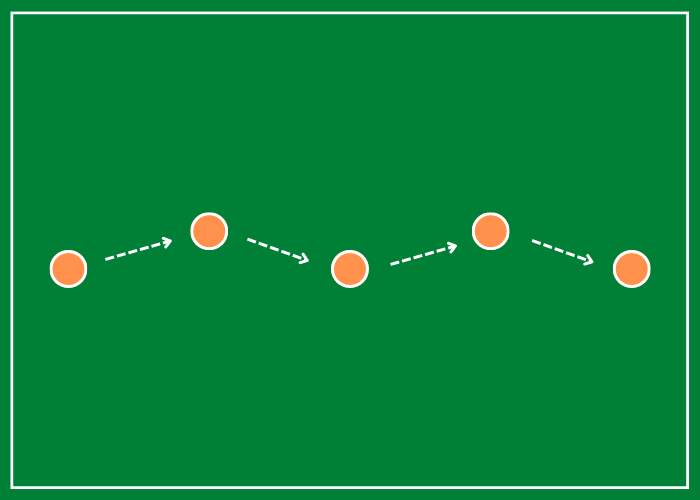 The zig-zag drill can be used to simulate beating a player in a one on one scenario by quickly changing direction. Think of each cone as a player on the opposing team that you need to get past.