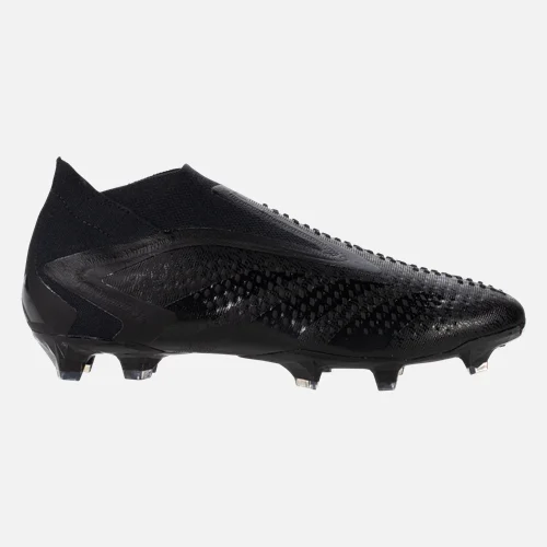 The laceless Predator Accuracy + offers more rubber elements than the laced version. It also features a Primeknit collar for comfort and support around the ankle.